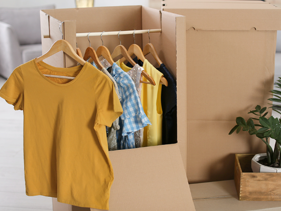 Rūpīgi un kārtīgi sapakojam apģērbu, lai tas pārvākšanās laikā saglabātu savu formu, tīrību un kārtību. Piedāvājam arī īpašas drēbju kastes ērtai pārvietošanai.